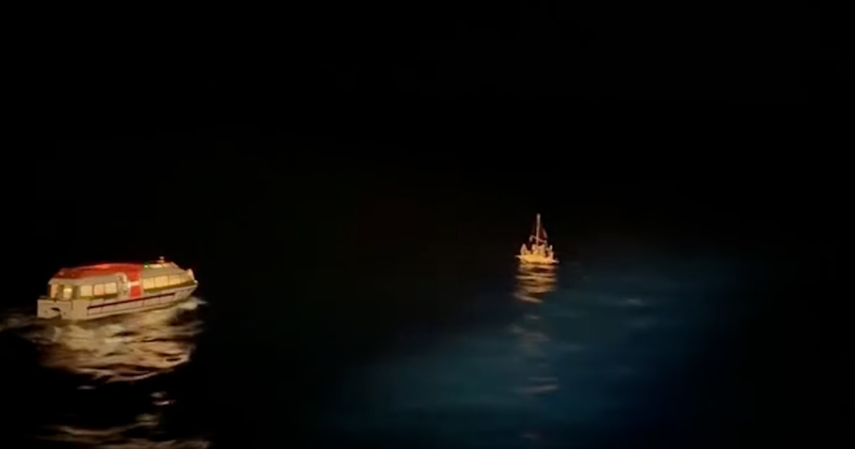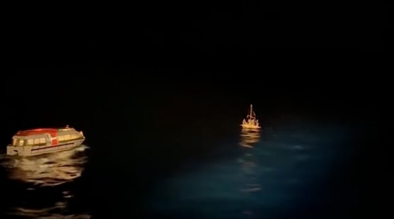 Cruise ship deploys lifeboat to rescue people on sinking raft