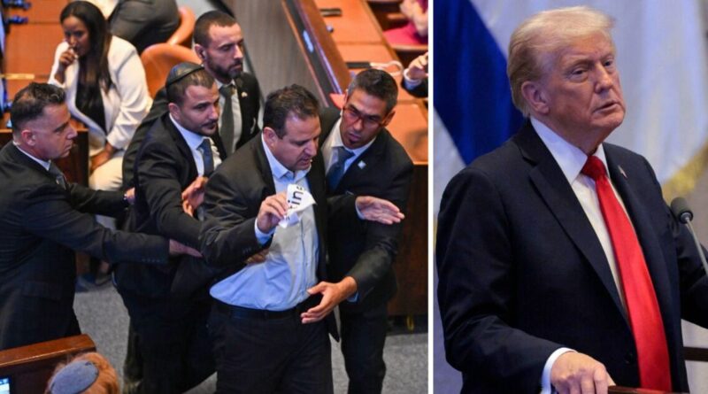 Donald Trump’s Israel speech descends into chaos as heckler shouts over President | World | News