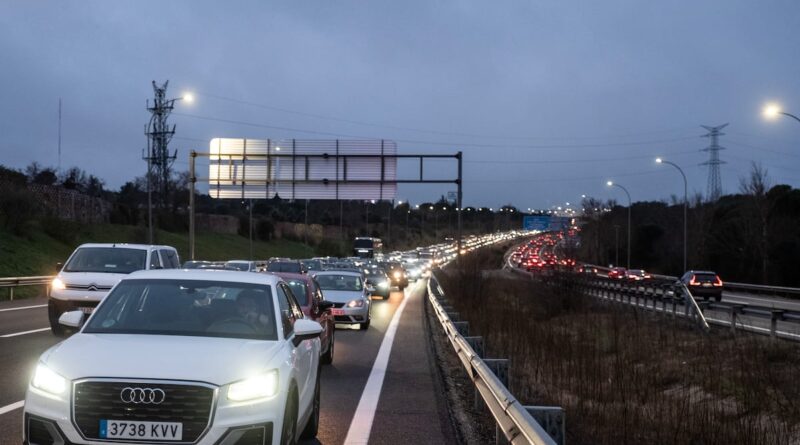 Ángel Ruiz no está solo. Antes de las siete de la mañana los coches encaran todavía de noche las vías de servicio de la M-50, casi todos en dirección al norte de Madrid. Se calcula que cada día 1,2 millones de personas se desplazan desde fuera de Madrid para trabajar en la ciudad. En el año 2016 eran 790.000. De acuerdo con los datos de la aplicación Tom Tom la congestión de coches en Madrid aumentó un 3,6% en el año 2025 respecto a 2024. Desde la DGT aseguran que la mayor saturación se produce entre las siete y las ocho y media de la mañana, en la salida de municipios obreros como en la A-5 a la altura de Alcorcón, la A-42 a su paso por Parla o Getafe, o la M-607 a su paso por Colmenar Viejo y Tres Cantos; así como en la entrada de los distritos financieros de las zonas ricas del norte como los de la A-1 en Alcobendas y las Tablas o la M-40 en Pozuelo de Alarcón. Atascos en el sur de salida, atascos en el norte de entrada.