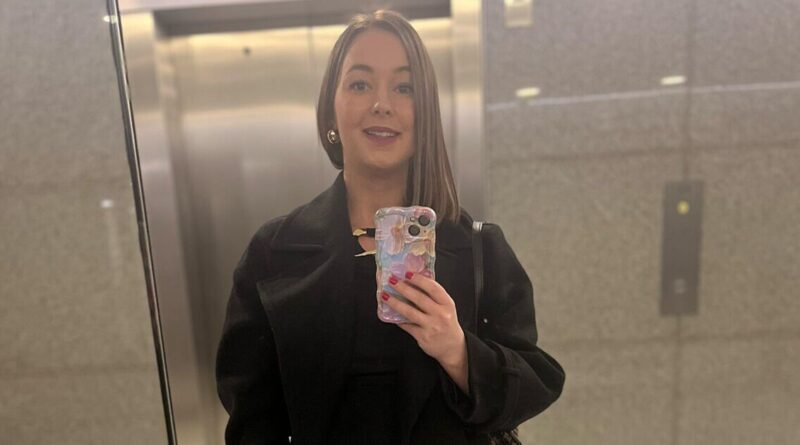 Chanelle Georgina, smiling, holding her phone.