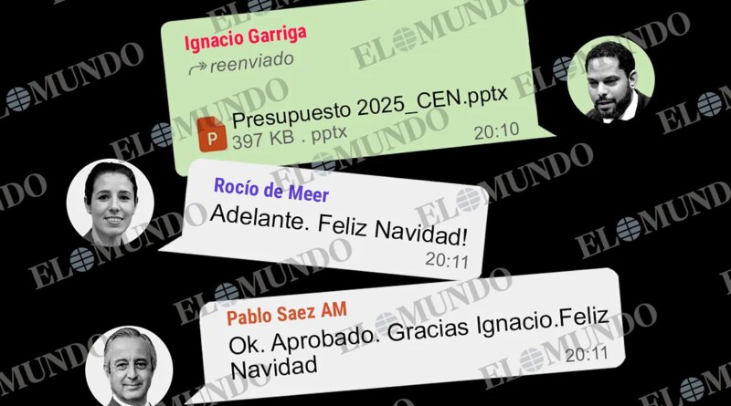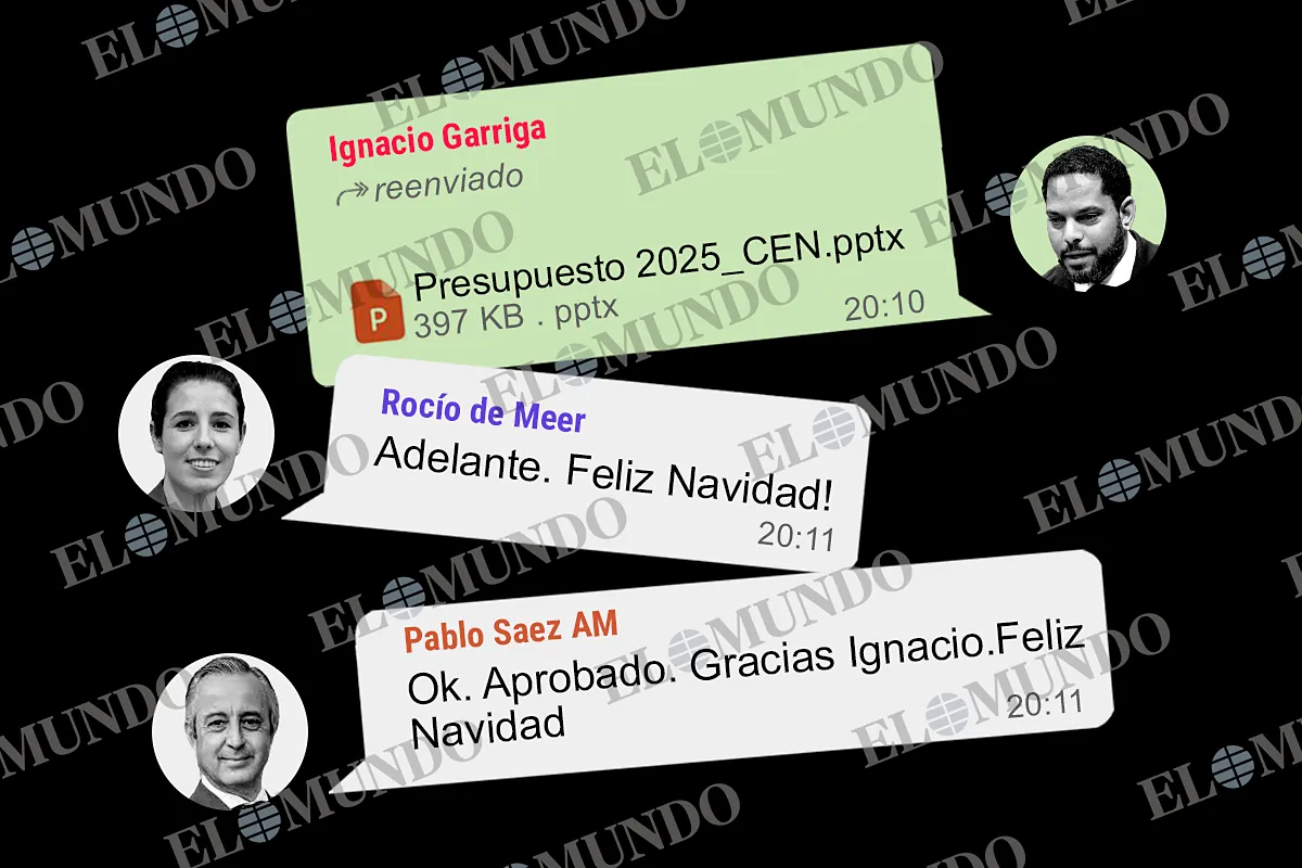 Como prueba fehaciente de estas acusaciones, EL MUNDO ha accedido a las conversaciones que demuestran que ni siquiera algo tan relevante como los presupuestos del partido se discute antes de ser avalado formalmente por el Comité Ejecutivo. Así ocurrió con las cuentas de 2025, cuya aprobación se produjo en WhatsApp, sin debate alguno, un viernes de Navidad, por la noche. Y con sólo un documento de dos páginas elaborado por el tesorero: la primera es la portada y la segunda, un cuadro con las principales cifras previstas para el ejercicio, en el que el partido tenía previsto ingresar y gastar más de 14 millones de euros.