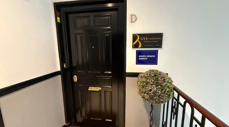 Como apoderado de Arapellet figura el empleado de Forestalia, Roberto Prez gueda, que comparte oficialmente decenas de sociedades con Mediaciones Martnez en el mismo domicilio social de la calle Serrano. Hasta 50 empresas vinculadas a Prez gueda estn domiciliadas en tan limitado sptimo piso junto a Mediaciones Martnez. En los rtulos de la puerta slo figuran dos de las vinculadas a Prez gueda, segn pudo constatar EL MUNDO este martes: GVJ&Associates Economistas y Abogados y el llamado Grupo Renew Energy.