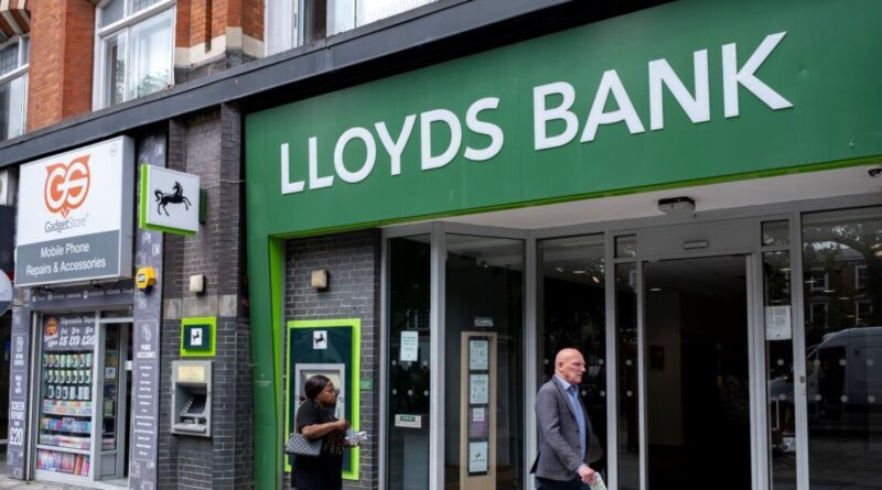People walking past a branch of Lloyds Bank