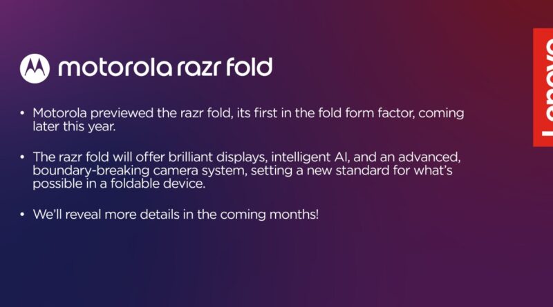 The Motorola Razr Fold is reportedly coming soon, according to prolific leaker Evan Blass. Details are scant at the moment. All the info we have is based on a single slide from a marketing deck that talks up the Fold’s camera system and displays, and squeezes in a mention of AI for good measure before proclaiming that it will set a “new standard for what’s possible in a foldable device.”
