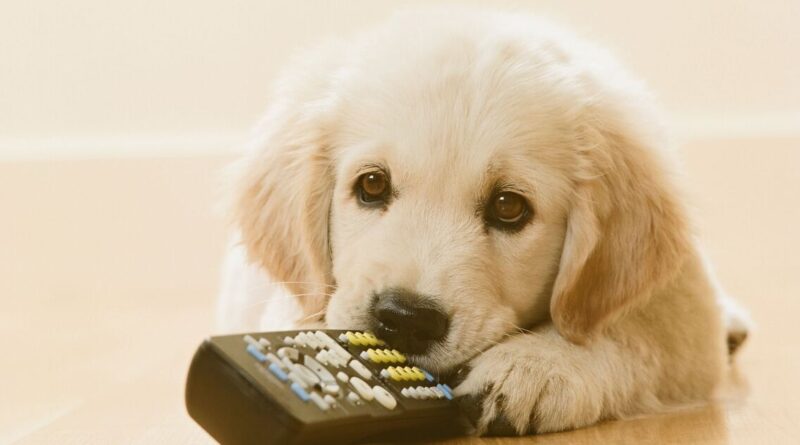 Golden labrador puppy dog with TV remote control (Image: Getty)